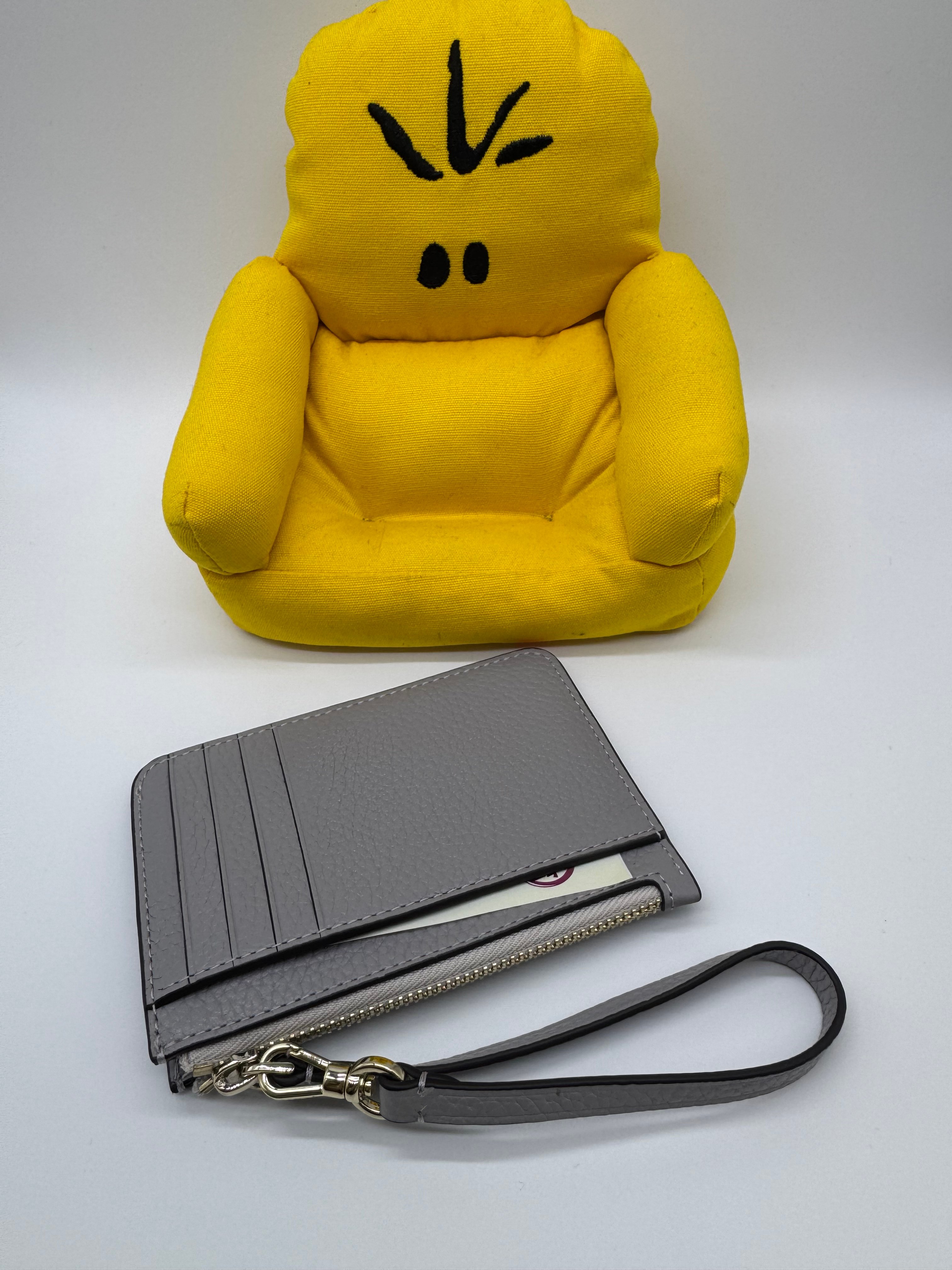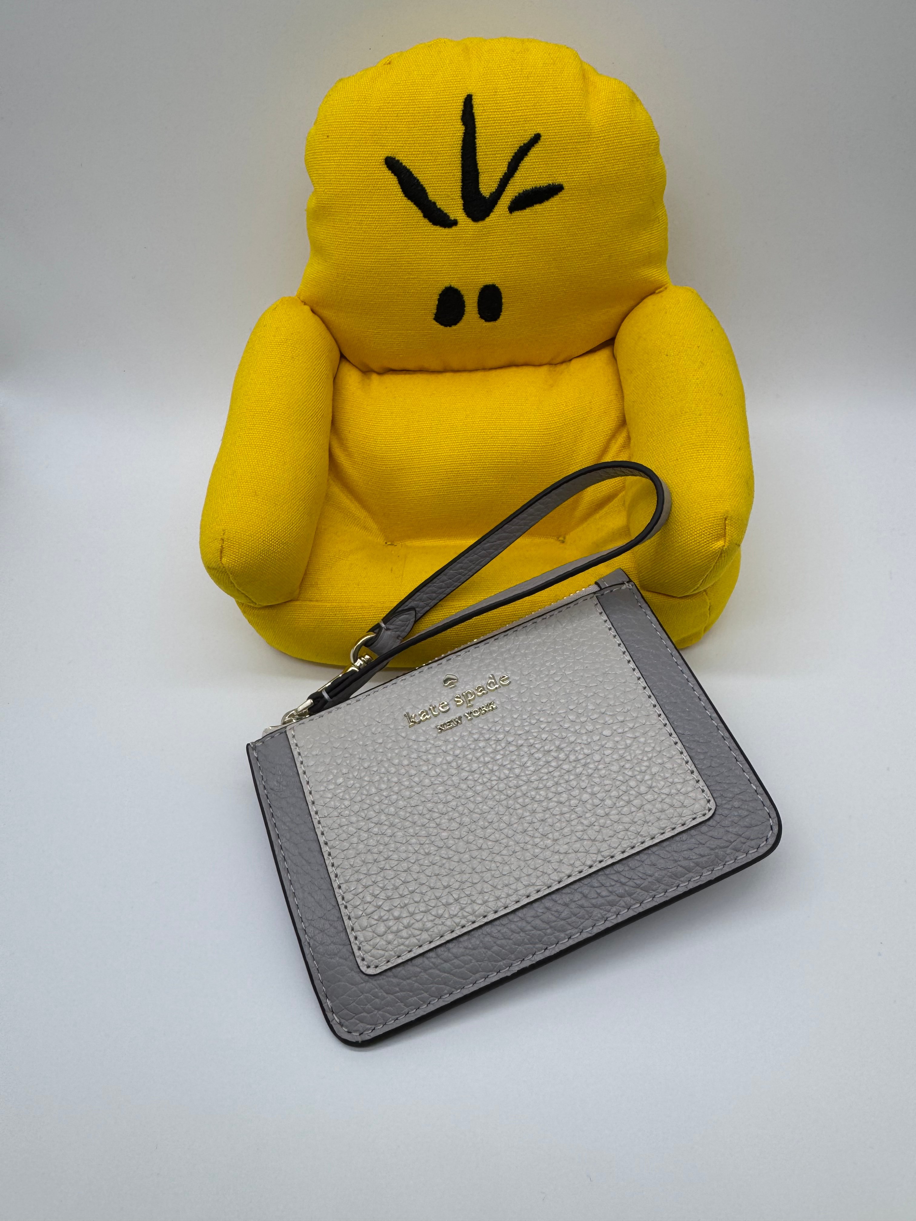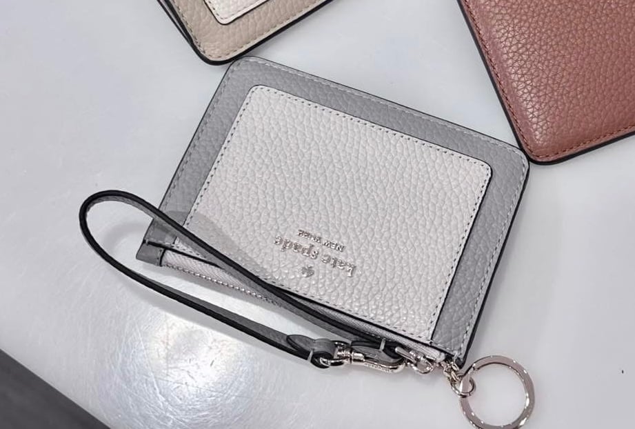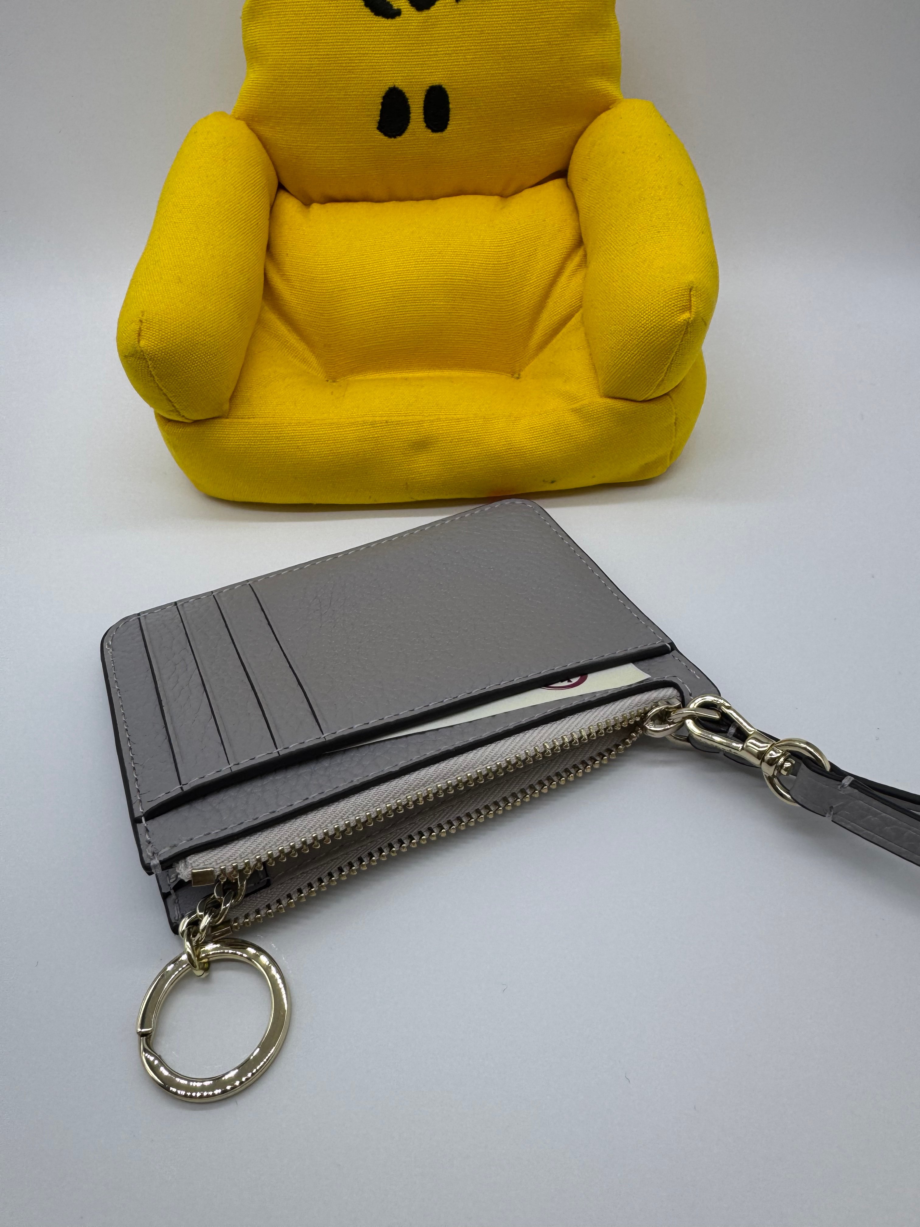 🇺🇸🛬🇨🇦Kate Spade outlet 荔枝皮灰白色拉鍊匙圈扣帶卡套現貸🩶🤍🩶🤍🩶